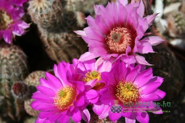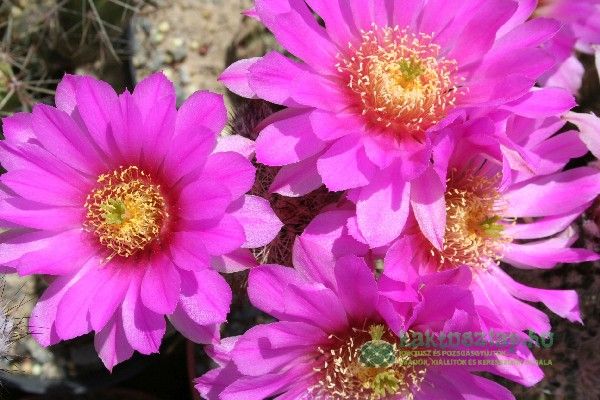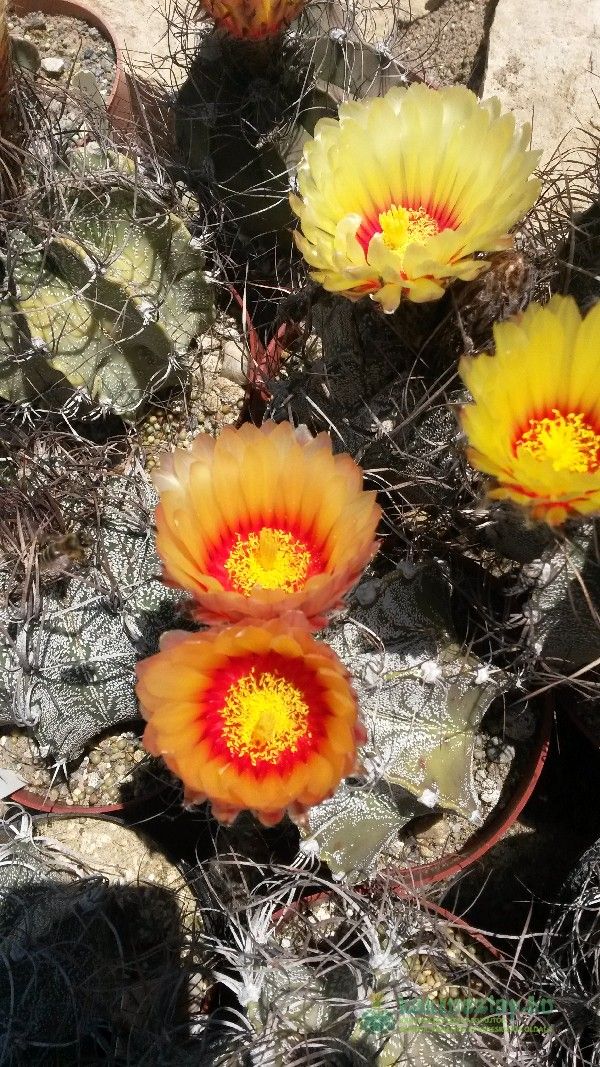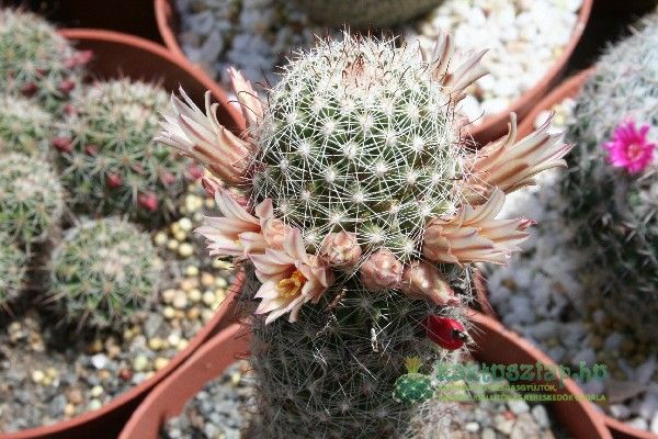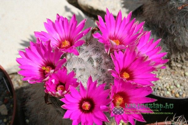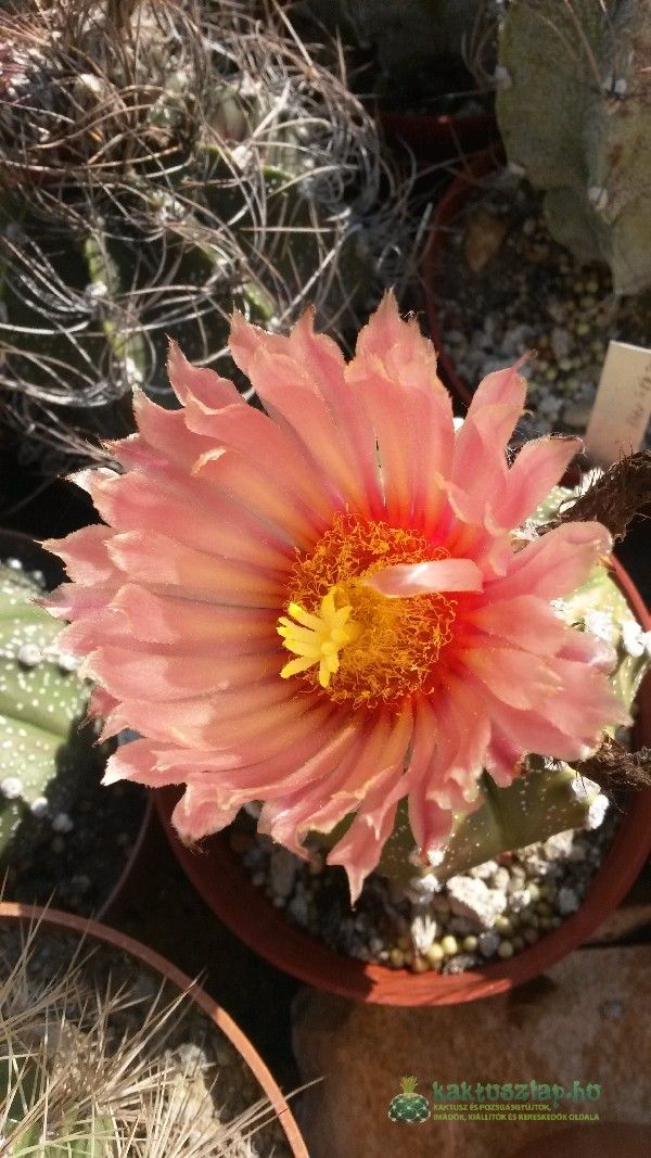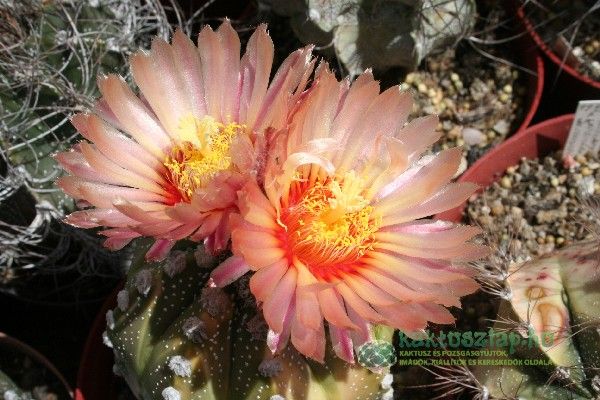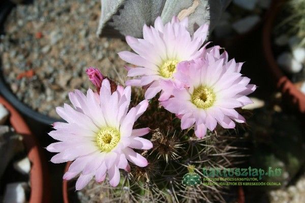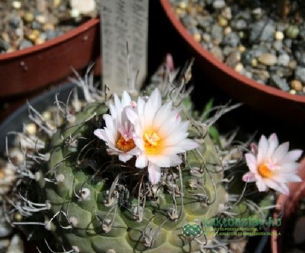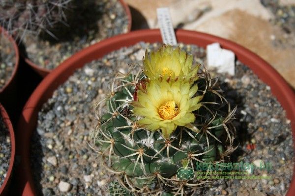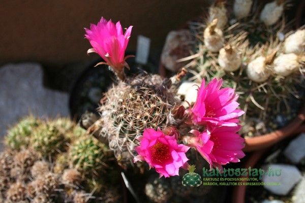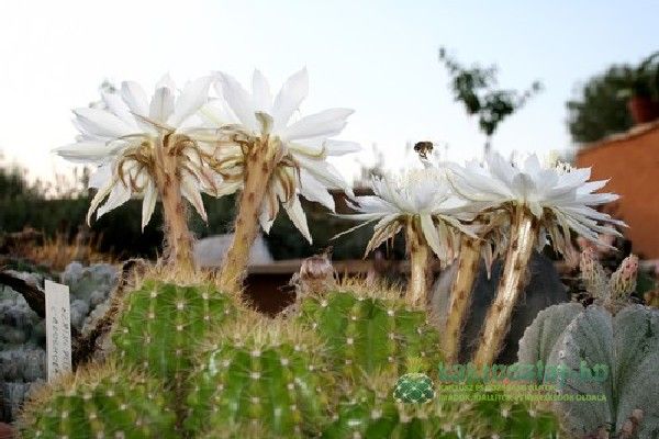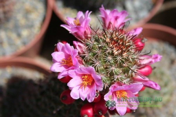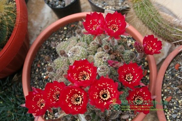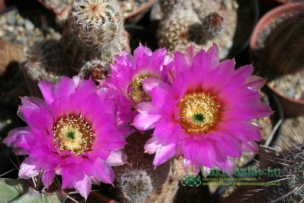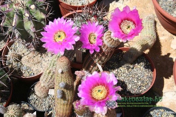 Abban az évben először próbáltam ki a hosszan lebomló és magas Kálium tartalmú műtrágyát. Azért esett a választás erre a növénytáp használatra, mivel ezerötszáz kaktusz igényeinek a kielégítése már komoly munka lett volna, s ezzel könnyítettem a teendőimen. A hatás nem maradt el. Szinte valamennyi kaktusz virágba borul a rosszabb időjárás ellenére.