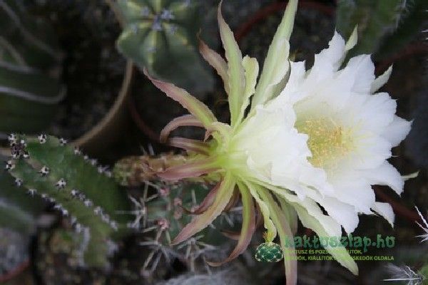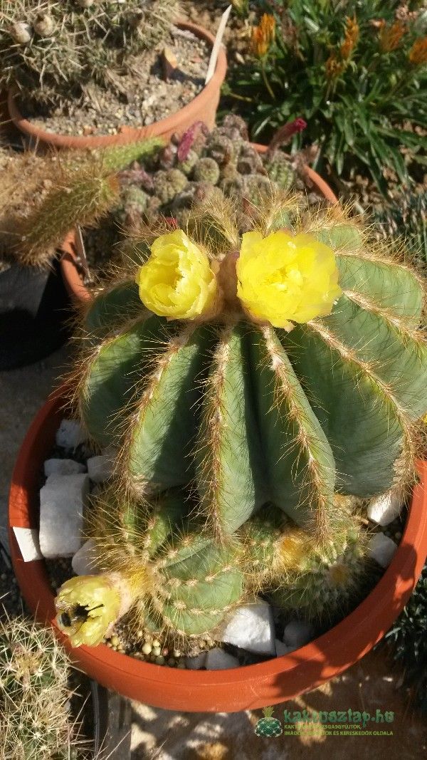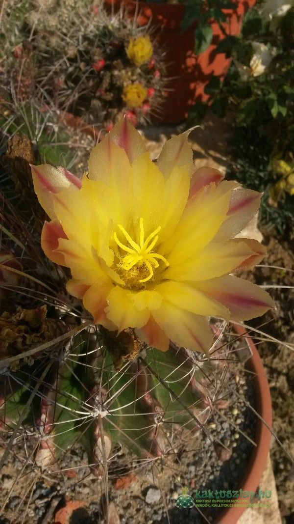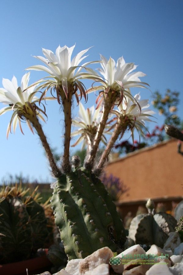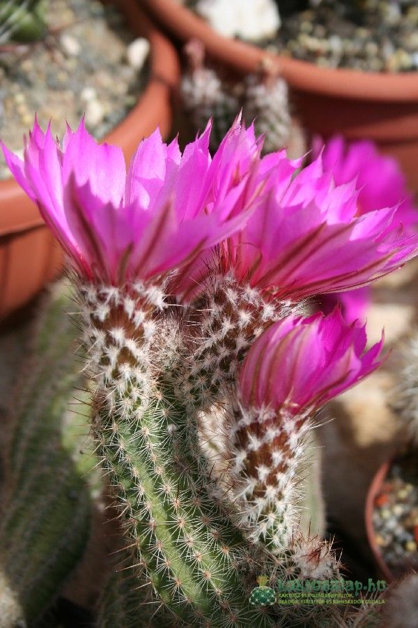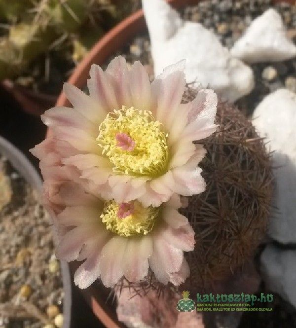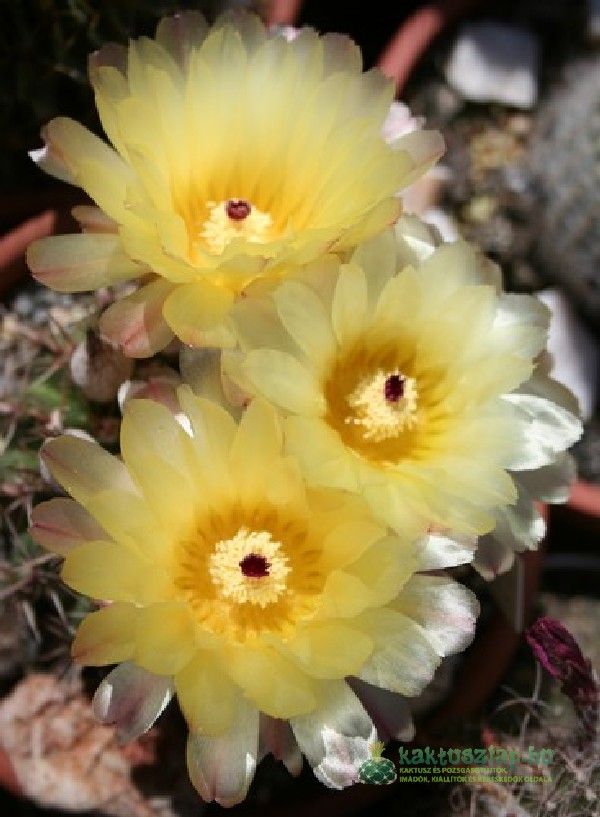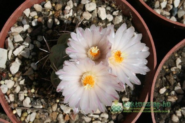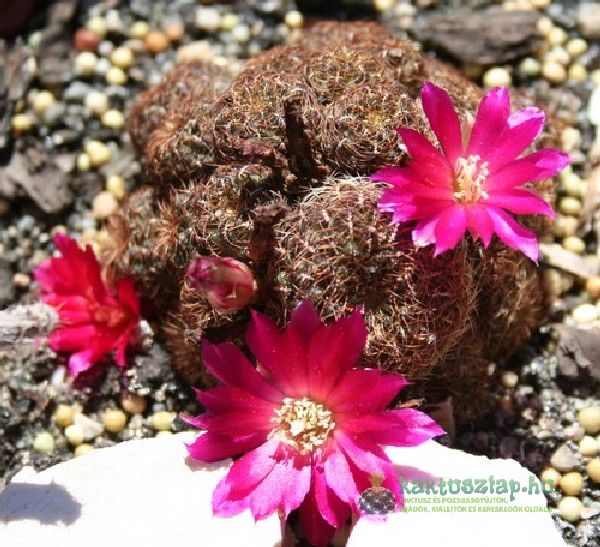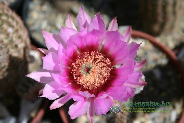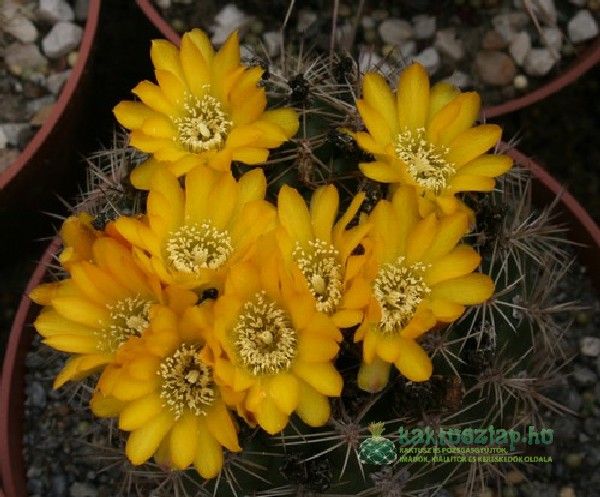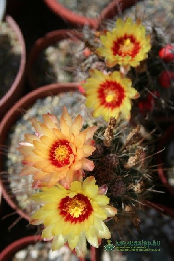 Abban az évben először próbáltam ki a hosszan lebomló és magas Kálium tartalmú műtrágyát. Azért esett a választás erre a növénytáp használatra, mivel ezerötszáz kaktusz igényeinek a kielégítése már komoly munka lett volna, s ezzel könnyítettem a teendőimen. A hatás nem maradt el. Szinte valamennyi kaktusz virágba borul a rosszabb időjárás ellenére.