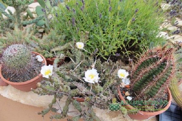 A nehézkes indulás ellenére olyan kaktuszaim is virágozni kezdtek abban az évben, amelyek eddig még nem. Ilyen volta a Puna clavarioides. A Ferocactus viridescens szinte már stabil virágzónak számított, ahogy az Echinocactusok is megörvendeztettek óriás, gyönyörű lila virágaikkal.