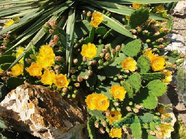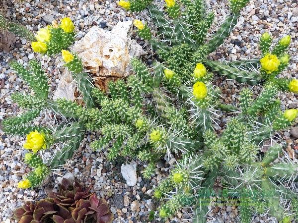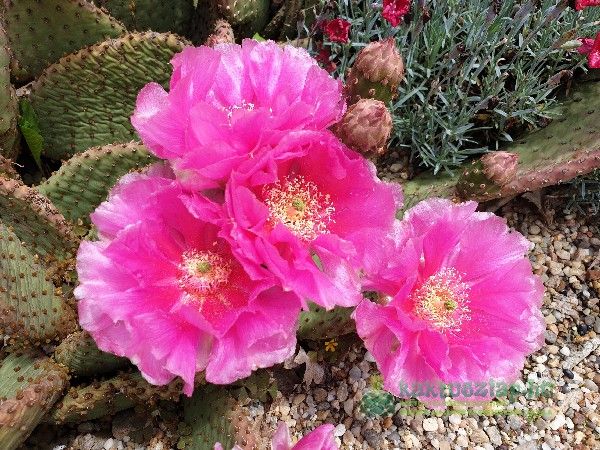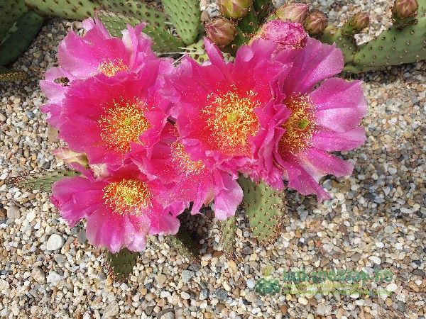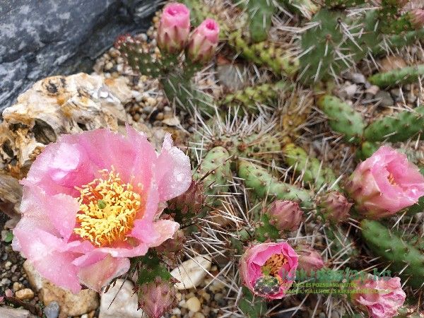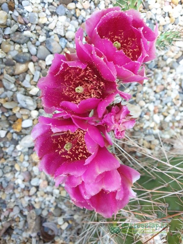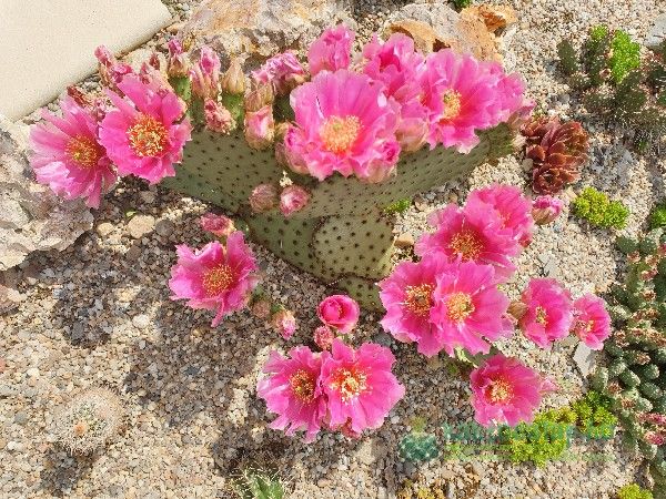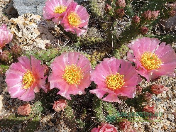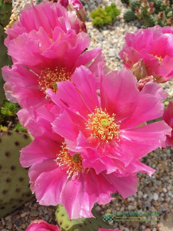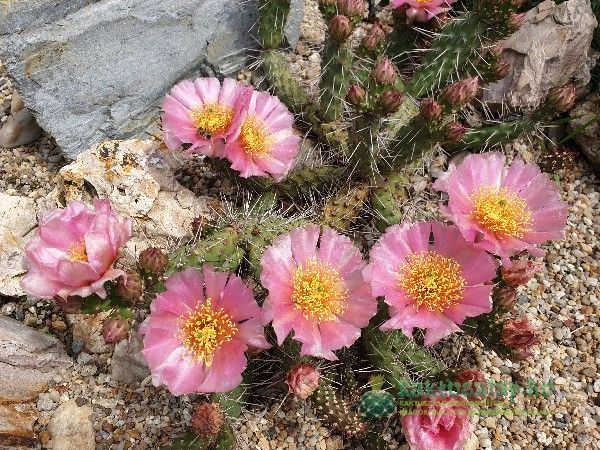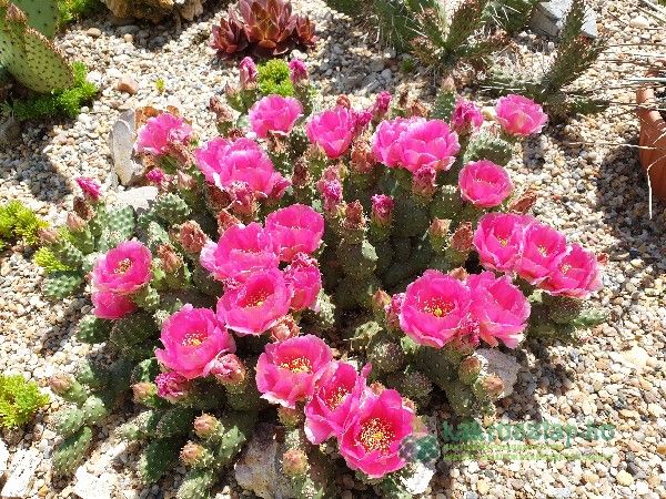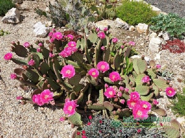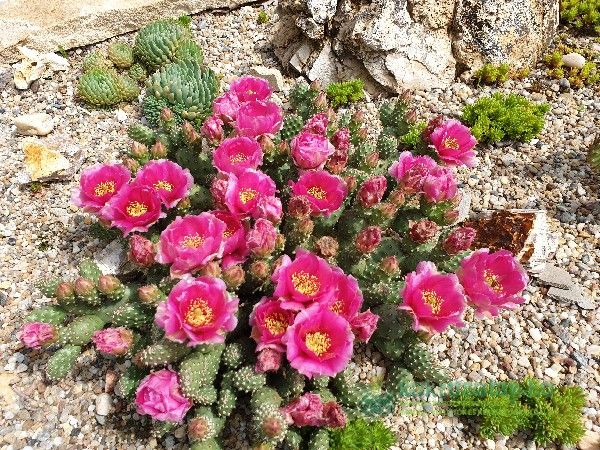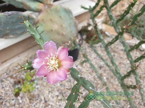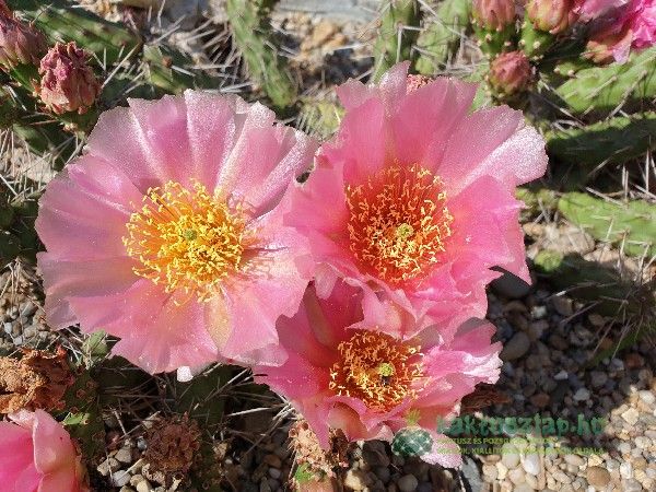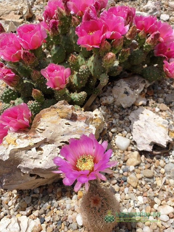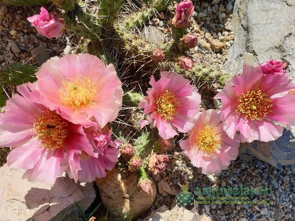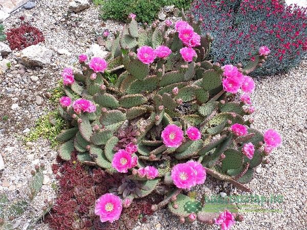 Ha belegondolok, milyen silány talaj a kedvencük, hihetetlen milyen gyönyörű virágot képesek produkálni. Egyik nagy kedvencem az Opuntia basilaris. Takarás nélkül, immár negyedik telét nyögi. A virágairól készült képeket nézve, vissza sem adják annak csodálatosságát, élénk rózsaszín színét, és nagyságát. Hiszen szinte tenyérnyi méretű virágokat is képes produkálni. Ha engedném már a fél sziklakertet benőtte volna, így szabályozni kell a növését.