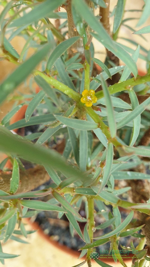 Virágai igen jelentéktelenek – akárcsak az Euphorbiáknál általában – kicsik és sárgászöld színűek, s alig 2-3 mm-ek, öt nektármirigye van.