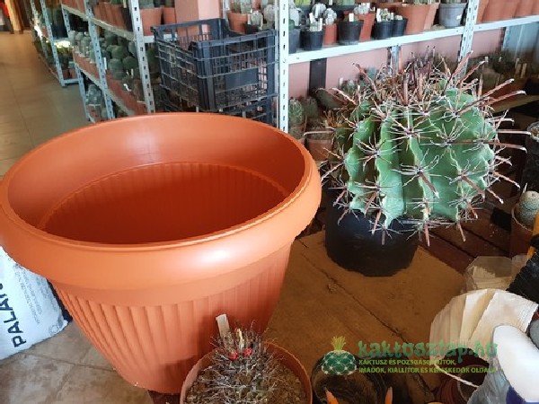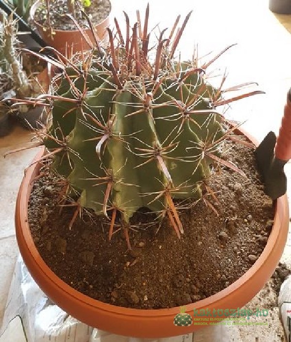Mivel a Ferocactusok nagy kedvenceim, ezért úgy döntöttem, hogy újból átültetem, ezúttal egy 35 cm-es cserépbe. Egyfajta kísérlet is ez, kíváncsi vagyok, hogy ezúttal mennyi idő kell majd neki, hogy kinője ezt a „házát” is.