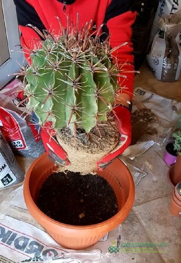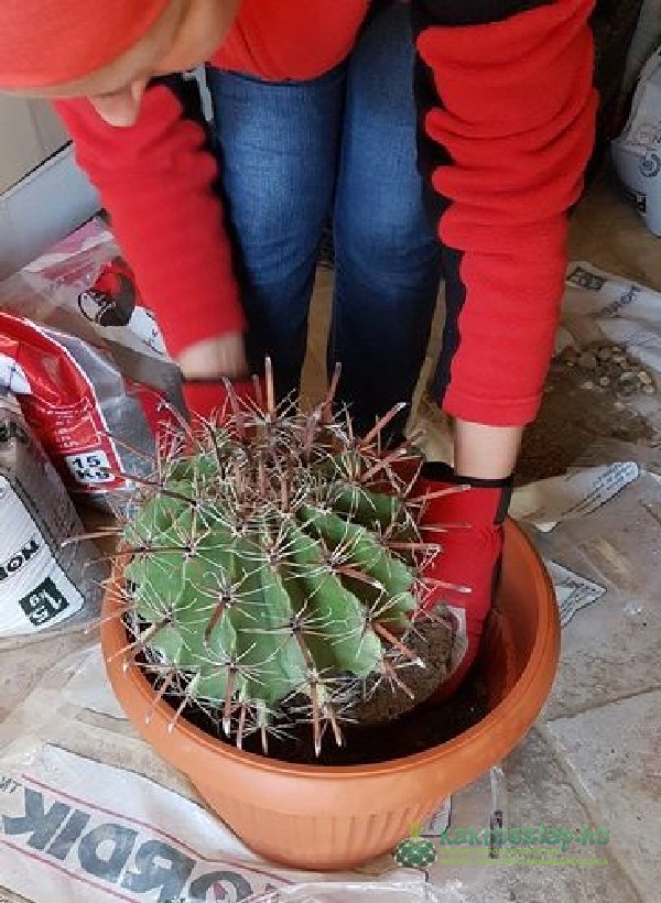 Az ültetés/átültetés önmagában egy nagyon élvezetes és megnyugtató elfoglaltság. Egy nagy méretű Ferocactus átültetés pedig igencsak ritka pillanat.