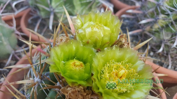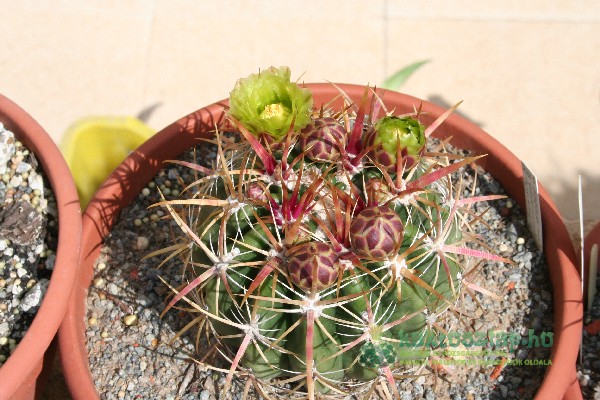 Ezeket még abban az évben átültettem. Szépen gyarapodtak abban az évben, viszont virágozni egyik sem akart. Következő évben is csak és kizárólat a Ferocactus viridiscens hozott egy virágot. Az azt követő évben már több Fero is virágba borult, és a viridiscensen is több bimbót nevelt ki. Mivel ez volt az első Fero, amelyik nálam virágzott, ezért is esett rá a választás.
