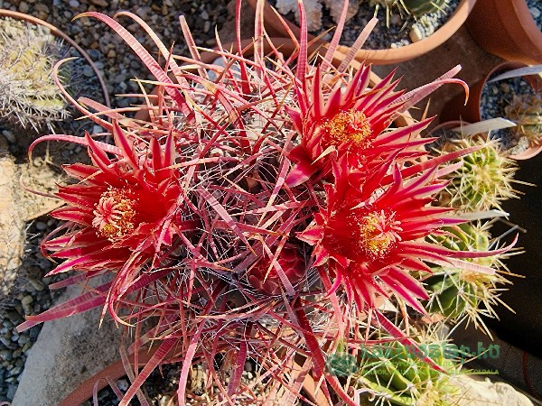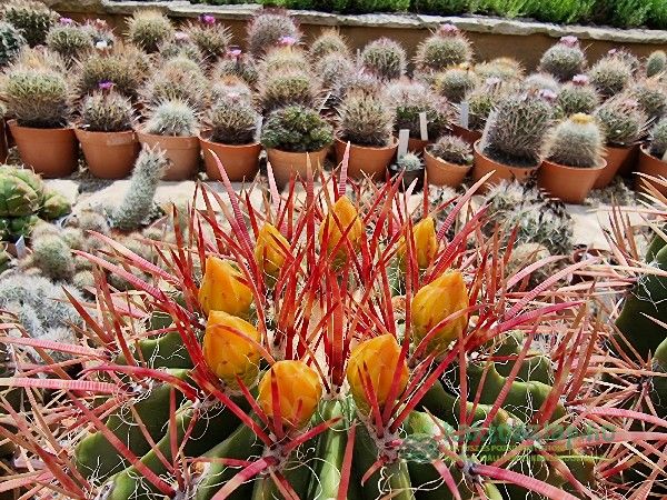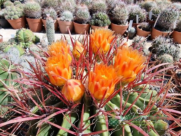 - Ferocactus wislizeni:(Arizona barrel cactus) Nagy, narancs virágú, elérheti az 1,5 m magasságot. Első virágzás 10–15 évesen. Első virág 10–15 évesen. Virágának a színe narancssárga-pirosas.