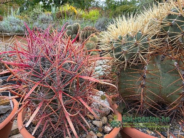- Ferocactus cylindraceus: (Compass barrel cactus) Hengeres test, pirosas tövisek, a nap felé kissé megdől („iránytű kaktusz”). Első virágzás 10–20 évesen. Virágának színe sárga-pirosas.