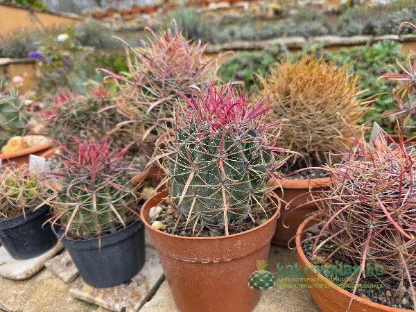 - Ferocactus pilosus: Közepes méretű, hosszú, fehéres-sárgás tövisek, lassan növekvő, díszes faj. Első virágzás 12–18 évesen. Virágának a színe piros vagy rózsaszín.