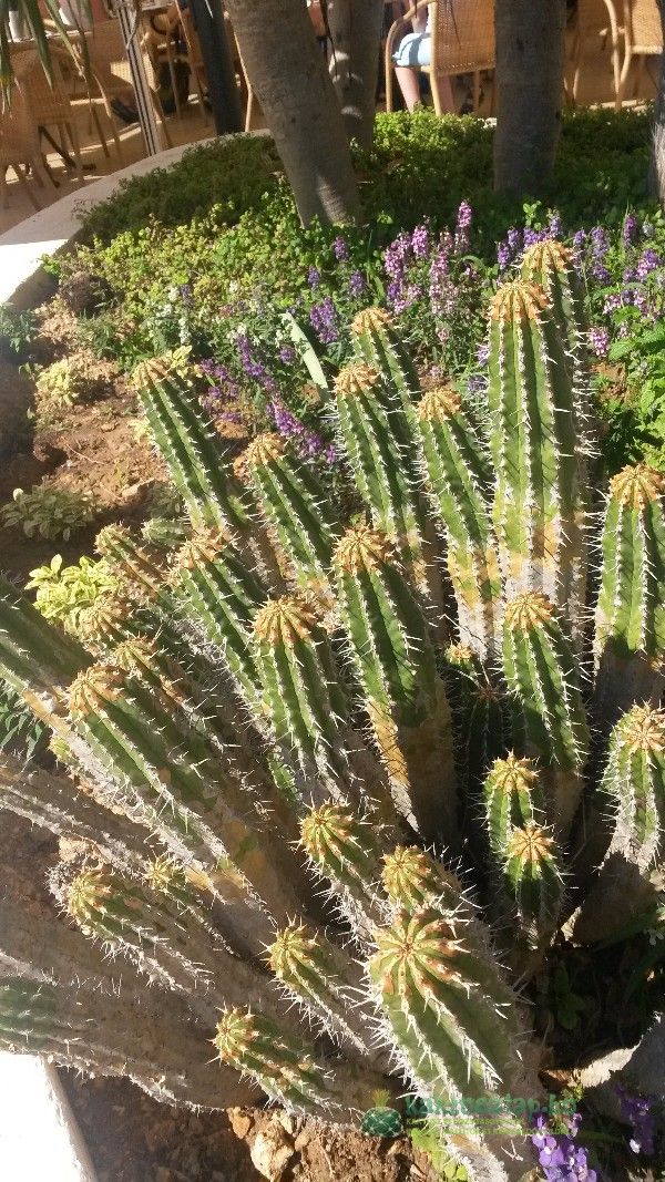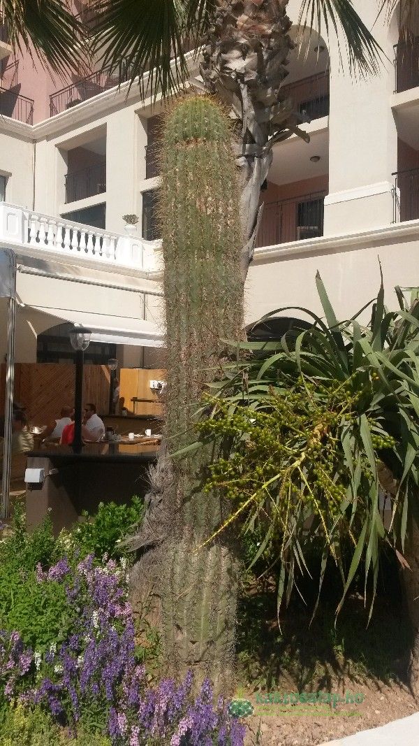 A szállodánk ebédlő teraszán is volt egy kis virágsziget, amibe ugyancsak kerültek kaktuszok. Egy óriási cereusfajta, ami legalább két és félméter magasra nőtt, mellette pedig egy kisebb fajtársa. A büfé rész dekorációi között is mindig fellelhettem, kis üvegterráriumban kaktuszokat.