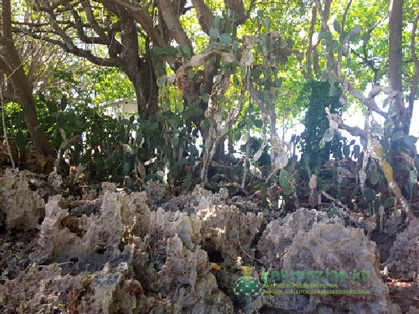 Azonban a legnagyobb meglepetésemre néhány helyen a kirándulásaink során rábukkantam a meredek sziklafal mentén vadon (!) növő Opuntia fajtákra. Szállodánkhoz tartozó tengerpart egy eldugott kis zugában, pálmákkal övezve is rábukkantam egy Opuntia-telepre. Teljesen jól érezték magukat a sziklák között.