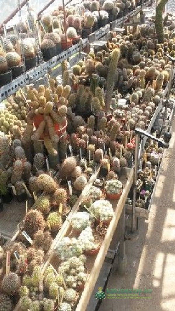 Érdeklődtem, hogy számszerűen milyen nagy a gyűjtemény. Erre pontosan nem tudott Füleki Józsi válaszolni, de megítélésem szerint közel kétezer Mammillária mosolygott az üvegházban.