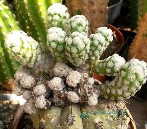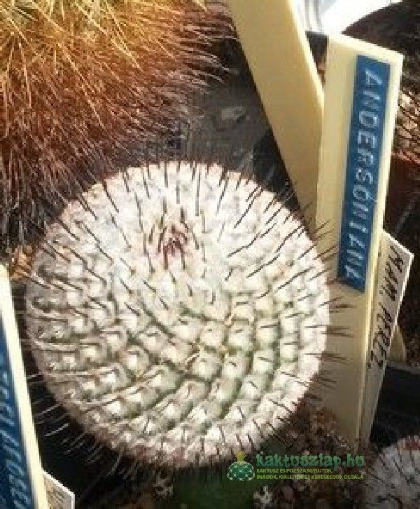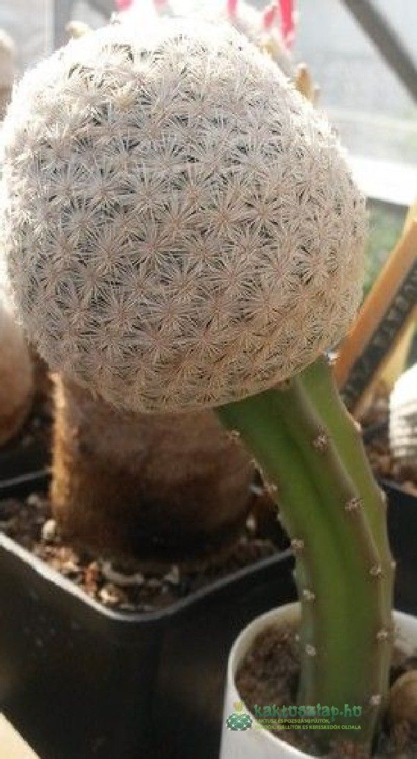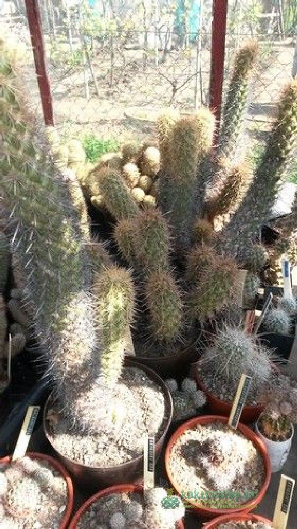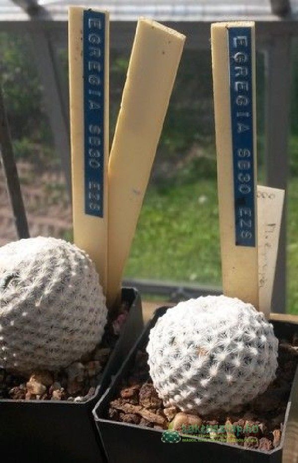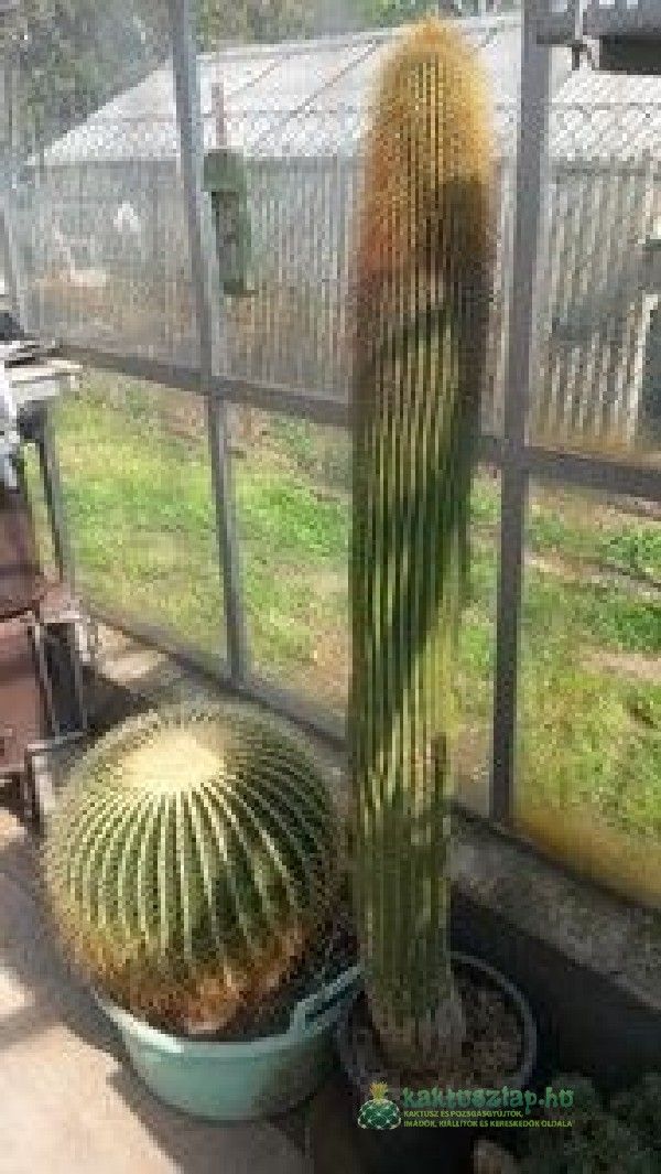 S ahogy gondoltam: Mammillariákon kívül csak egy-két más fajhoz tartozó kaktuszt találhattunk az üvegházban. Ezek közé tartozott egy cereus és egy Echinocactus grusonii. Utóbbiról kiderült, hogy több mint hatvan éves és már virágzott is. A magokból pedig szépen kikelt egyedek is sorakoztak az egyik tálcában. A cereus pedig hetvenes évekbeli magvetésből származik, vagyis az sem mai „csirke“.