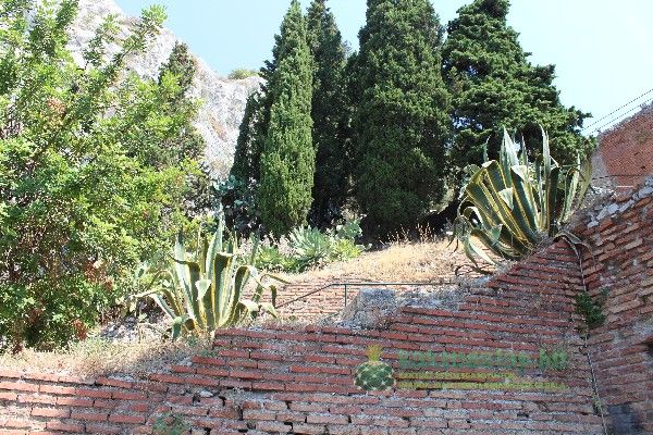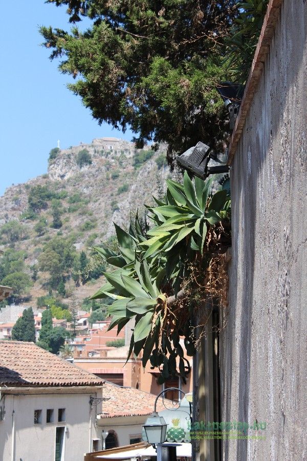 A mediterrán térségre jellemző, hogy az elhagyatott helyeken szívesen telepednek meg Opuntia fajták. Messinából Taorminába vezető út mellett is rengeteg Opuntiát láttam vadon nőni. Taormina ókori színházának kövei mellett pedig Agavék nőttek zavartalan nyugalommal. De persze az itteniek is szerethetik a kaktuszokat, hiszen cserépben nevelt Opuntiákat is láthattam.