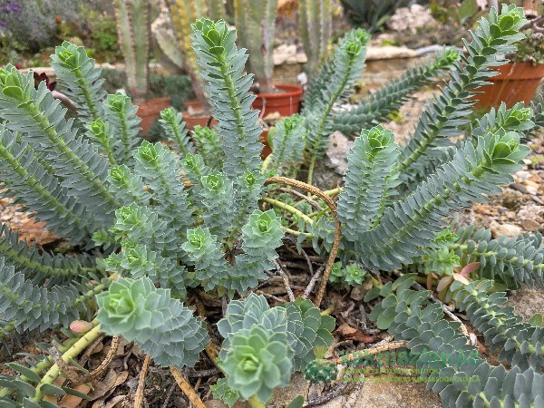 A képen is látható Euphorbia myrsinites a sziklakertemben is megtalálható. Nagyon ellenálló fajta, szinte mindent elvisel. Egyedüli hátránya invazív jellege. Magvait szinte szétlövi, s nagyon könnyen ki is kelnek, így adott pillanatban már kezd gondot okozni egy sziklakertben. Amúgy nagyon mutatós.
