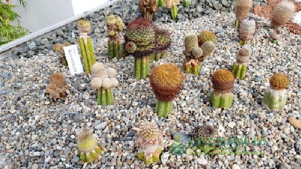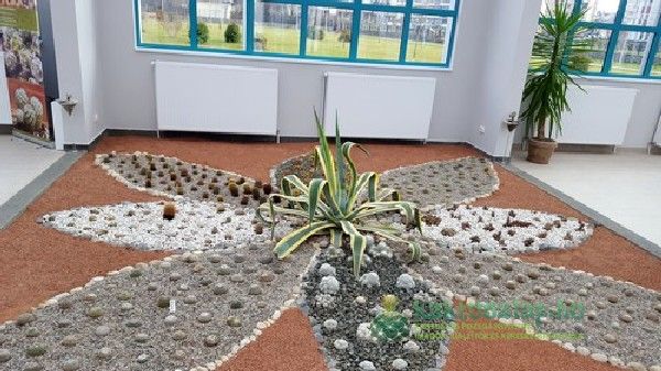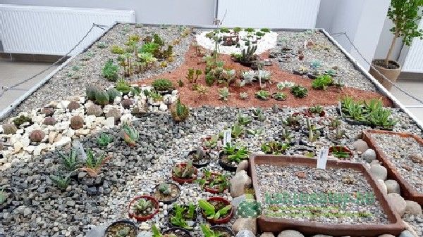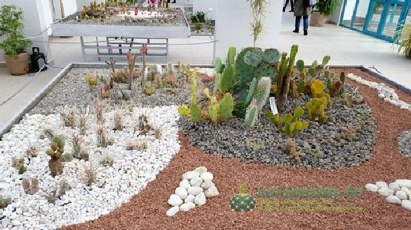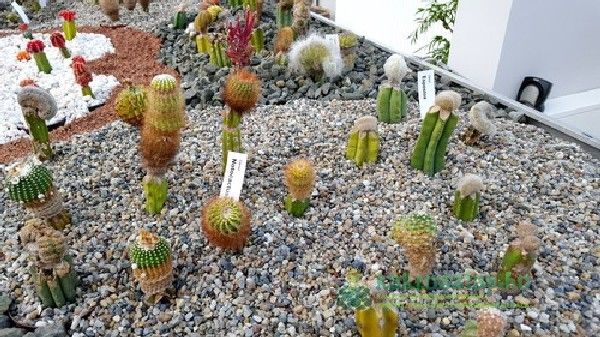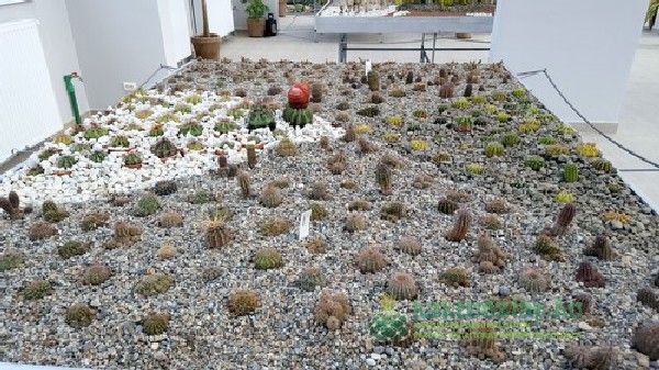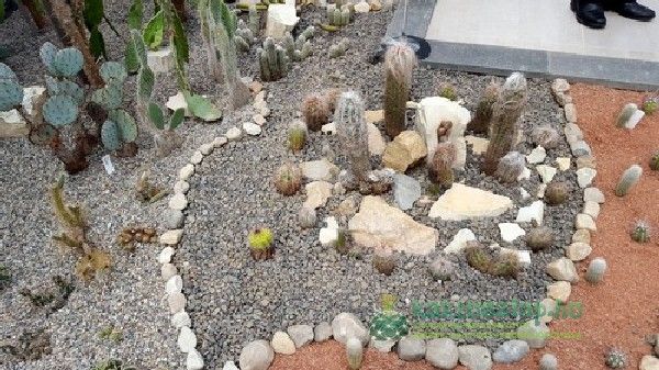 A kaktuszok elrendezése látványos, szemet vonzó formákat alakítottak ki, amelyekbe aztán helyet kaptak a növények. Akárcsak egy igazi gyűjteményben itt az egyszerűbb fajták mellett igazi ritkaságok és értékes példányok is felfedezhetőek.